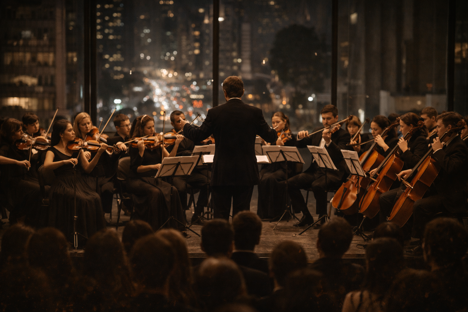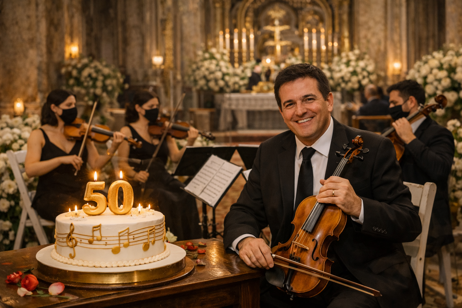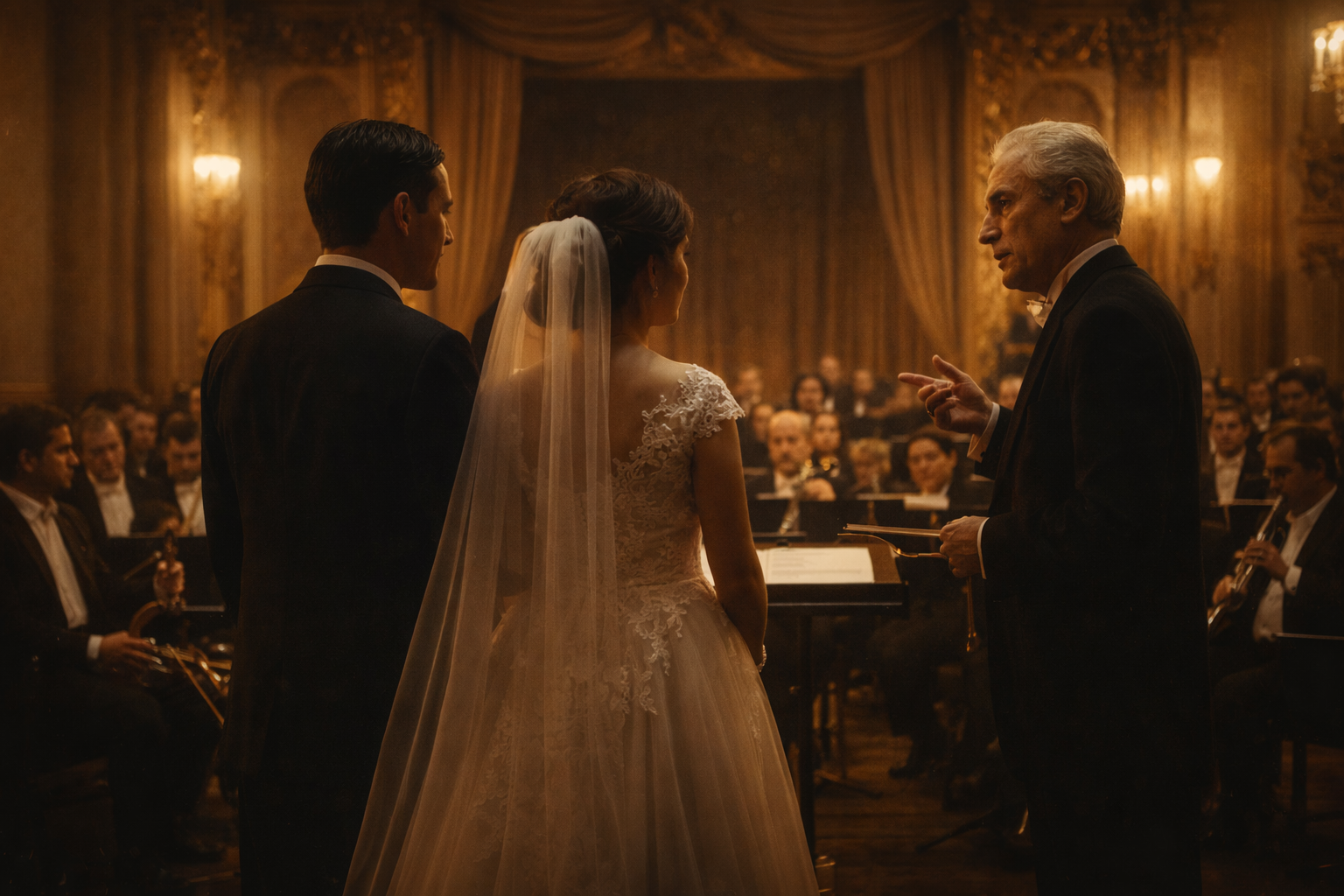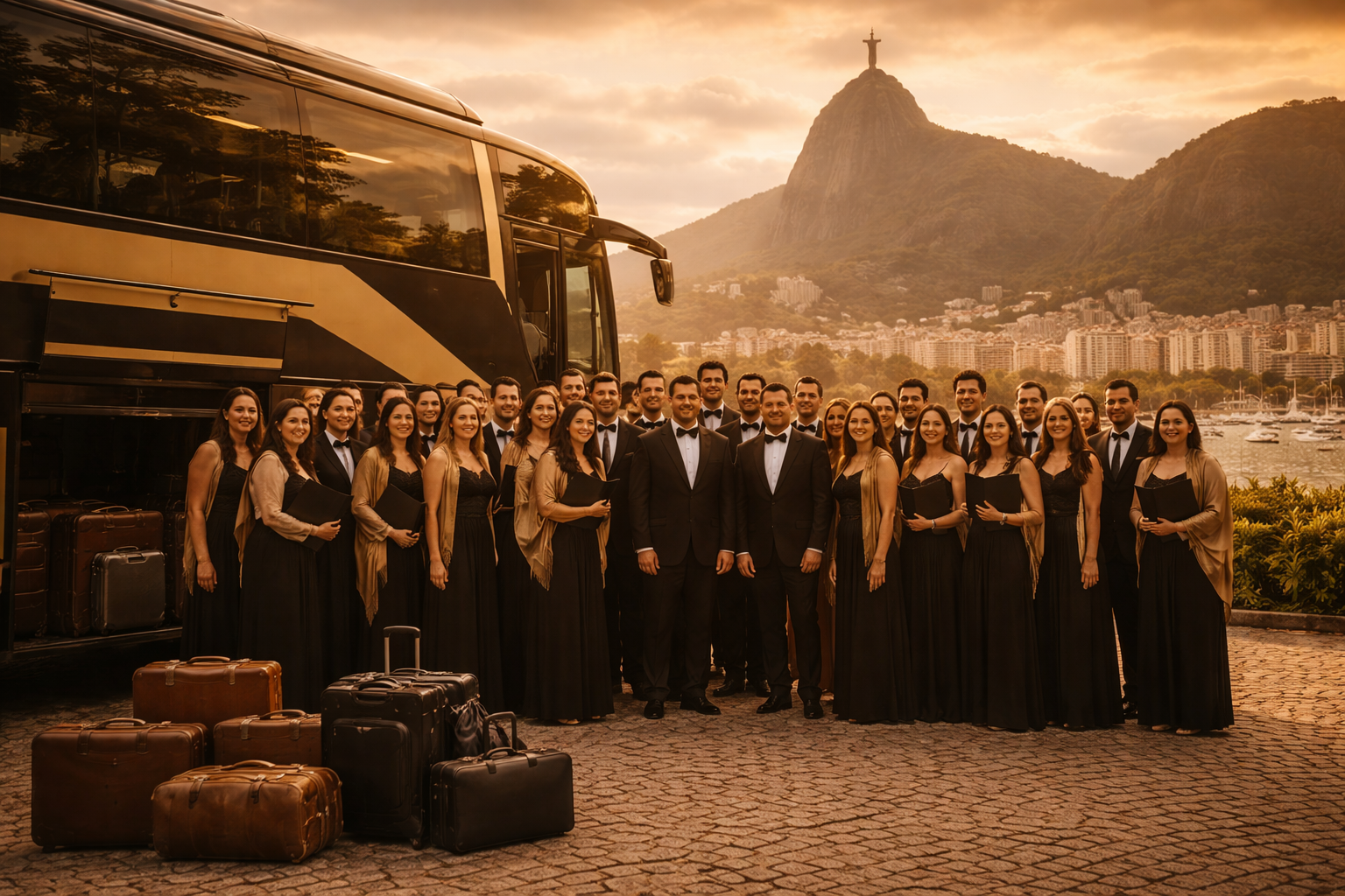 Criação do Maestro: Os violinistas em Trajes de Gala acompanham as “Damas de Honra”.