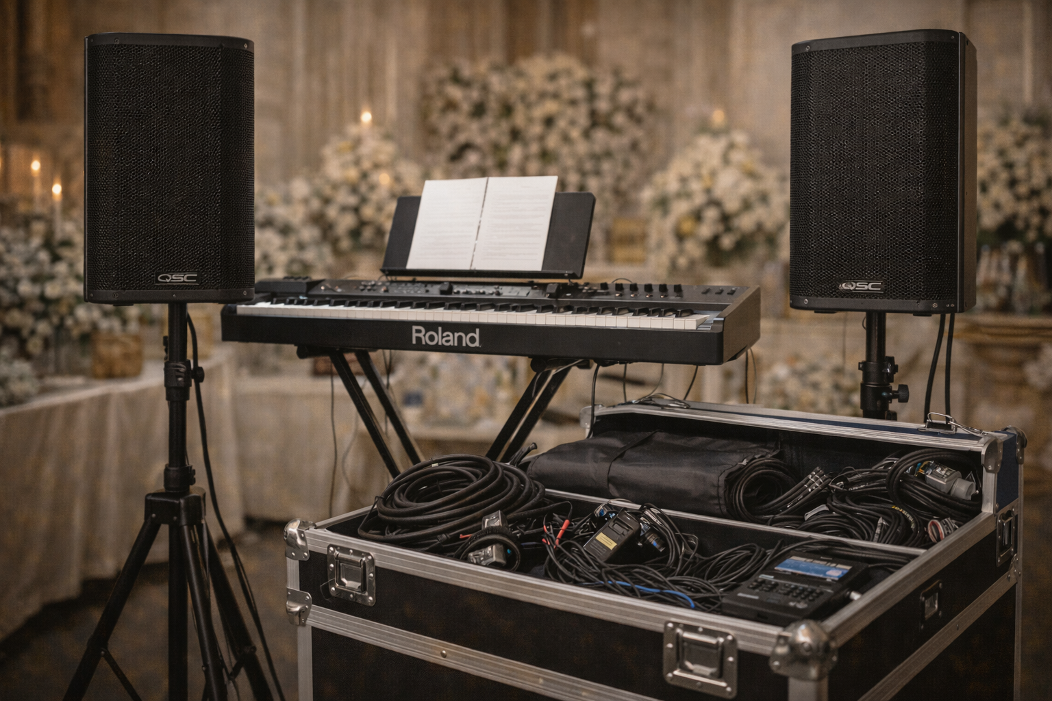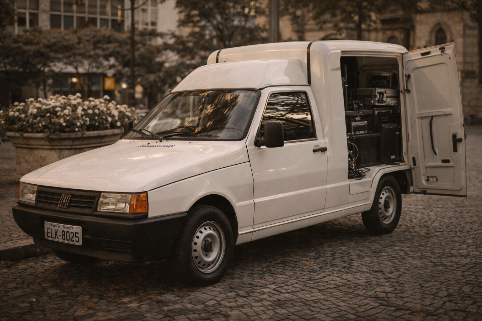 A qualidade nos resultados exige material necessário: Tecnicos de Som, Hoadies, microfones, caixas de som, mesas digitais, estantes, cabos em geral. Surgiu, então o Primeiro Veiculo de carga para equipamentos de som de um Coral, a Fiorino Furgão 1991, nossa relíquia, que já atuou em mais de 10.000 casamentos. Até hoje a tratamos com muito Carinho…